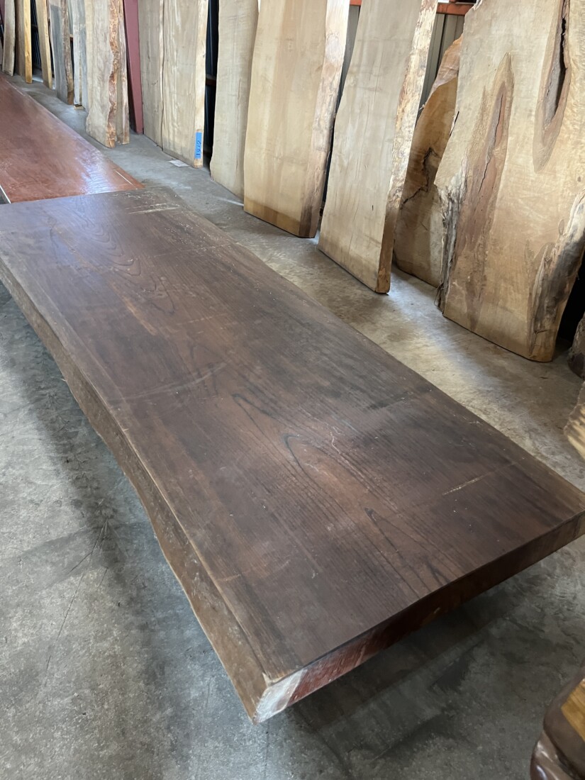 ・使われていた当時の表面塗装の表裏面を削った、未仕上の状態の一枚板です。