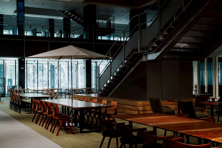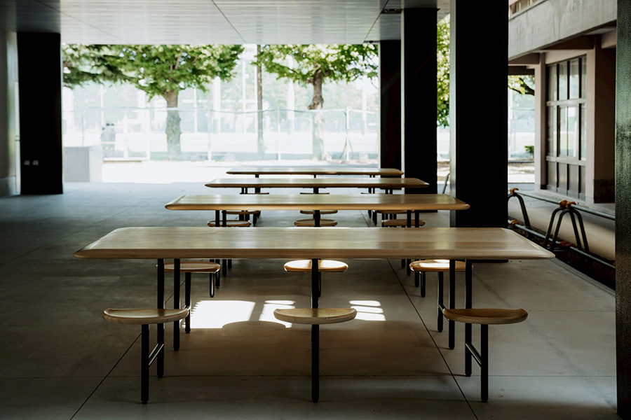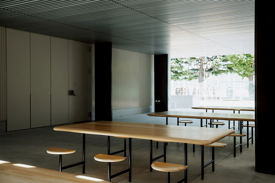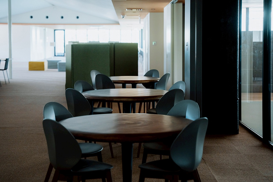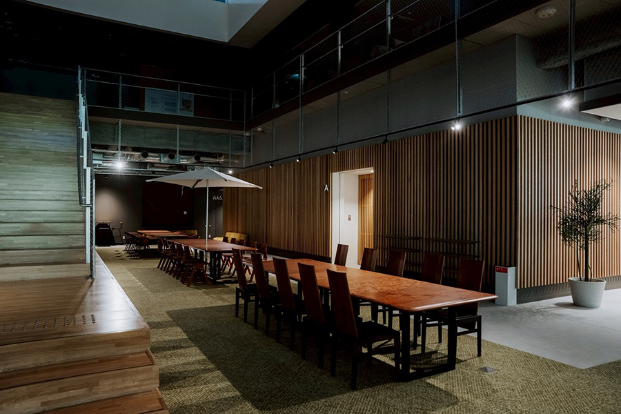 再生された木材は、新しい学びの場に柔らかな表情を添え、空間全体に温もりと静けさをもたらしています。