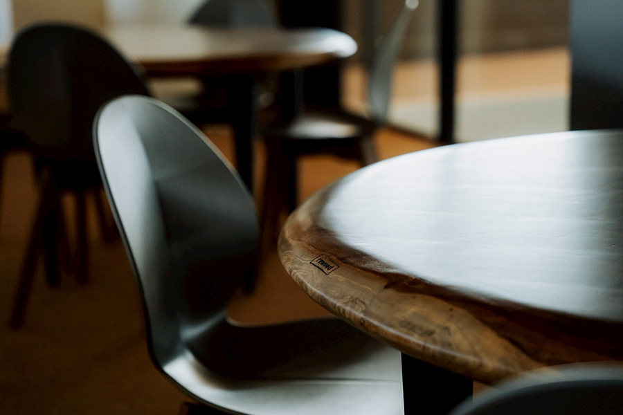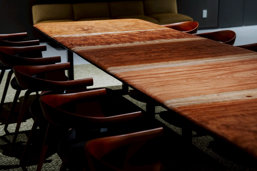 納品した家具には、かつて日本の家庭で使われていた座敷机やカウンター材が使われています。