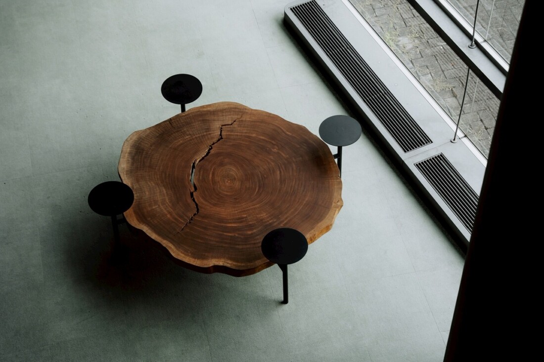 自然の木が作り出した美しい曲線や不規則なフォルムを活かした家具シリーズ、「Forest_Line」。循環型一枚板 rewood の中でも特に個性的な形状を選び、家具デザインとして再構築しました。