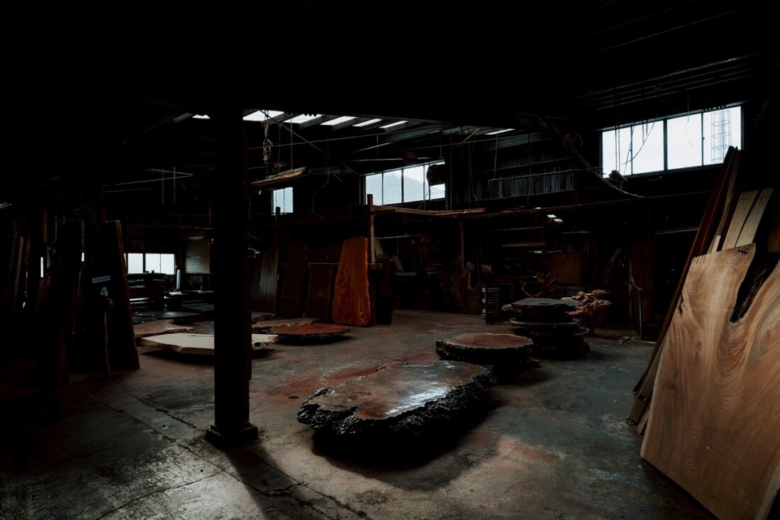 rewood warehouseには、使われていた座卓やカウンターなどの一枚板が全国から集まっています。