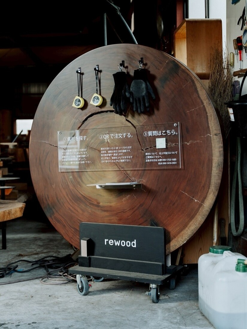 岐阜県中津川市付知町の全国から入荷したrewood未仕上材の倉庫