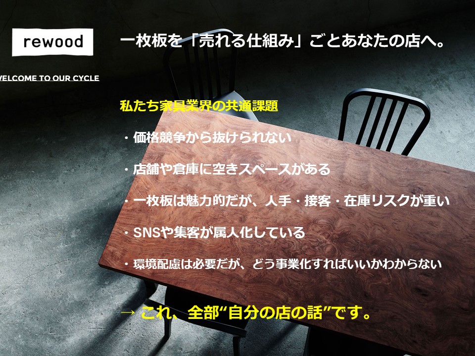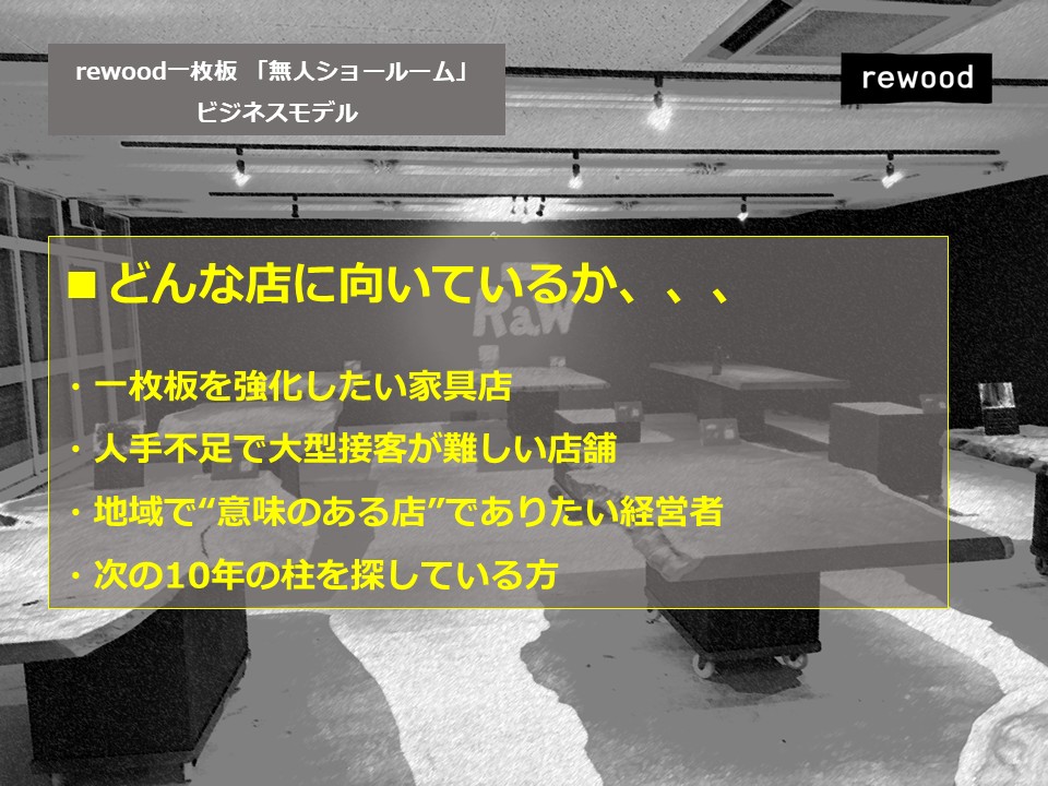 rewood一枚板「無人ショールーム」パートナーシップ提案資料